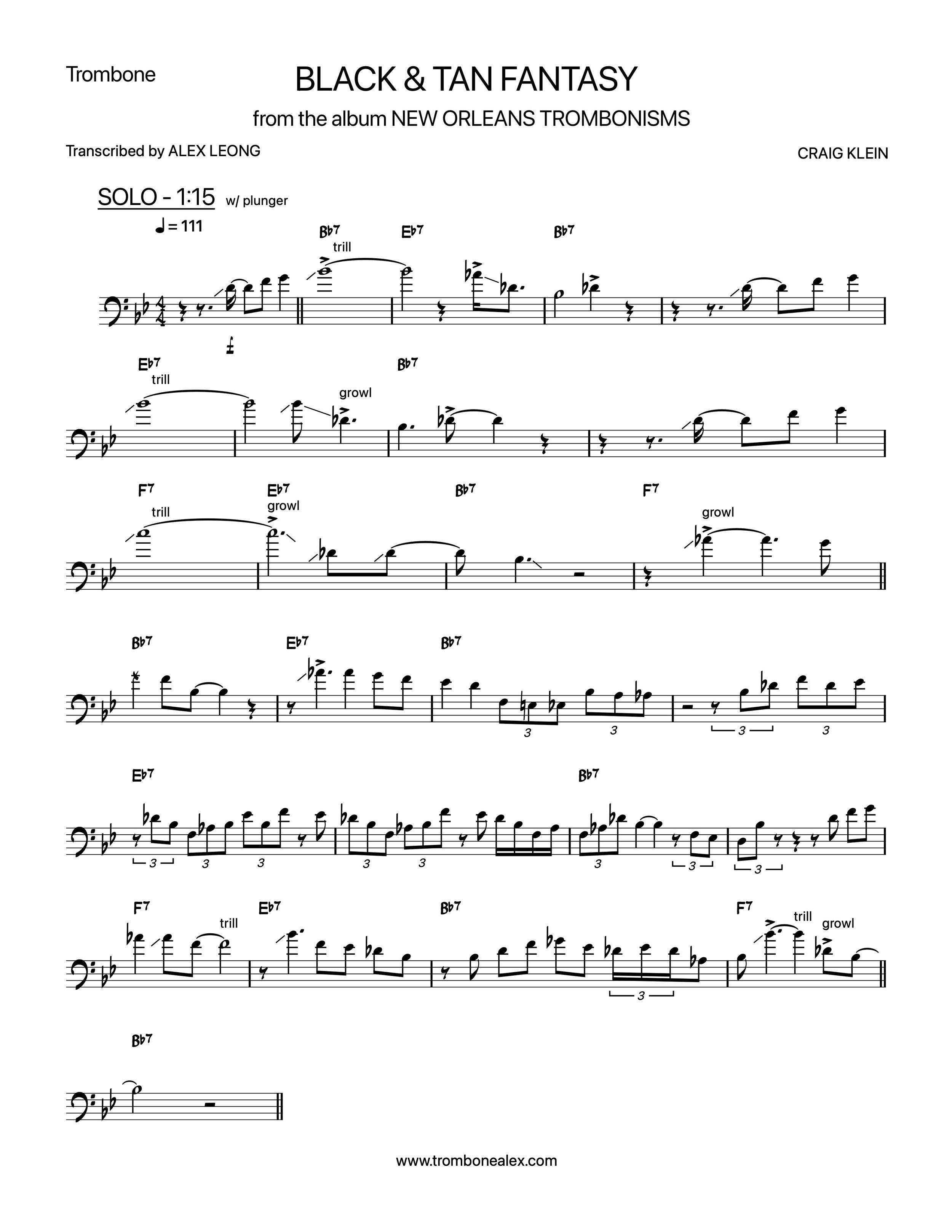 “Black & Tan Fantasy” (PDF) from the Craig Klein album, New Orleans Trombonisms.