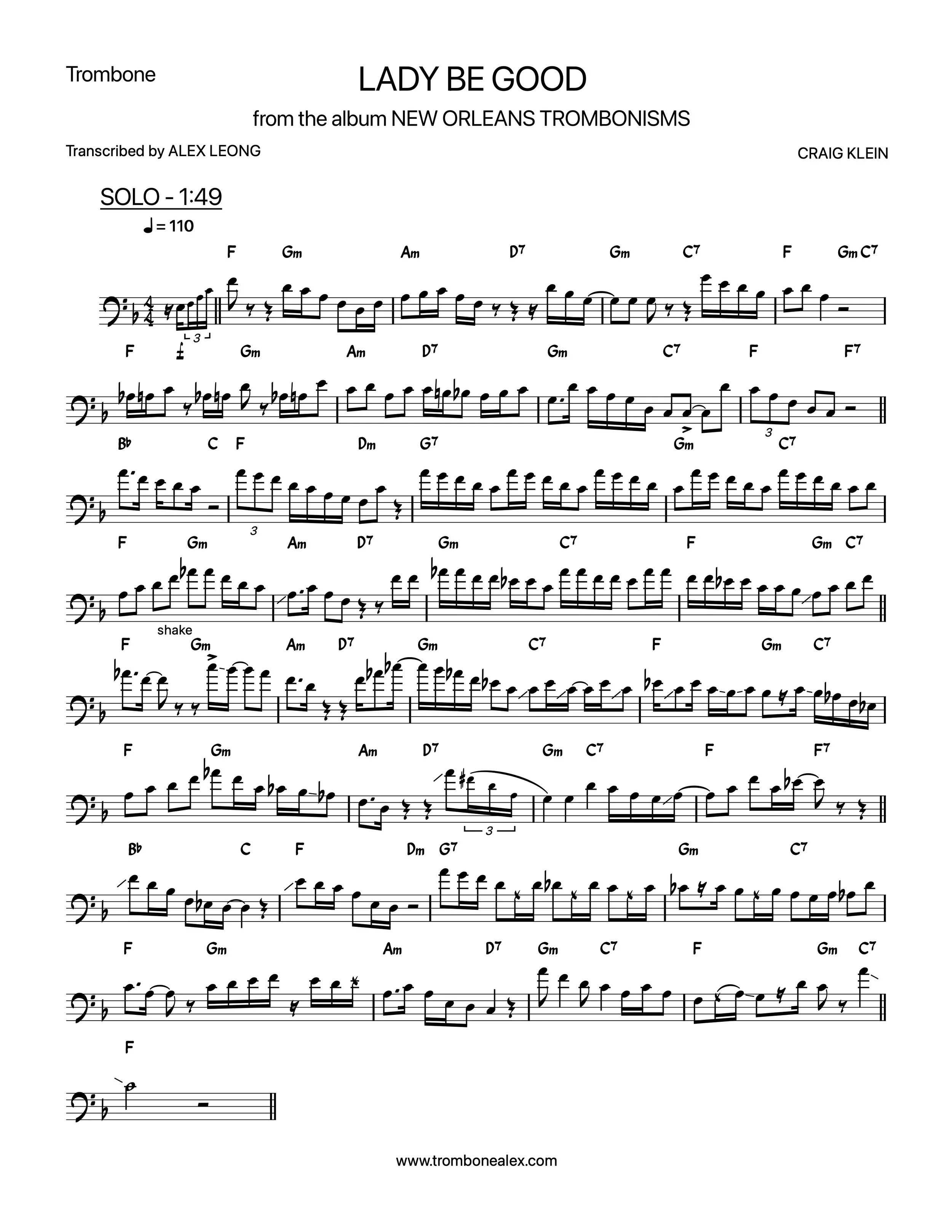 “Lady Be Good” (PDF) from the Craig Klein album, New Orleans Trombonisms