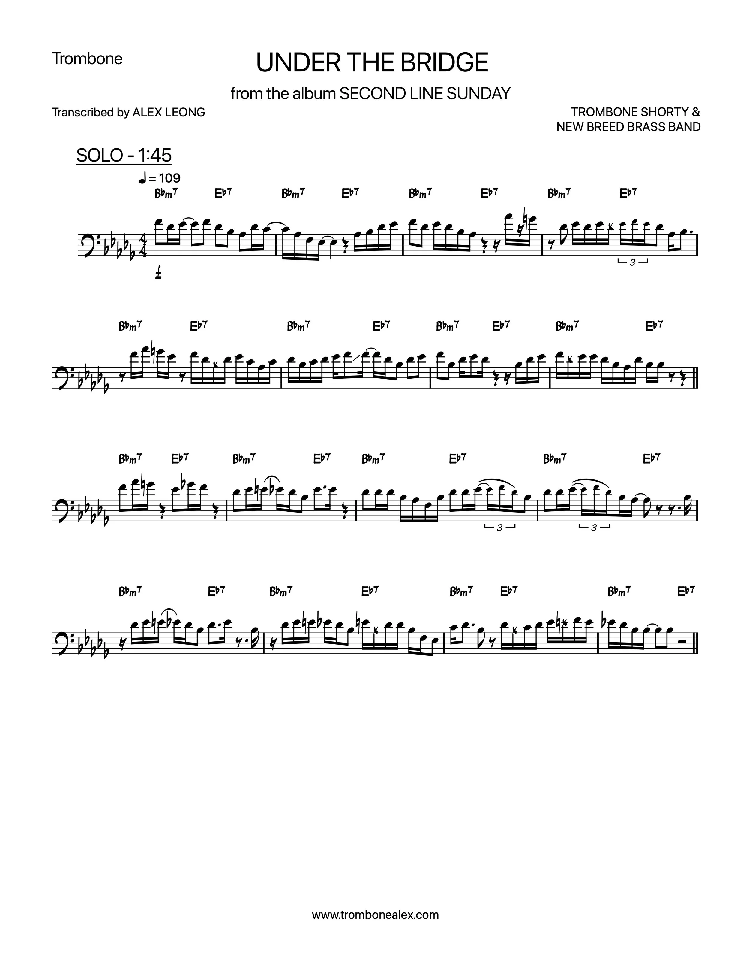 “Under The Bridge” (PDF) from the Trombone Shorty & New Breed Brass Band album Second Line Sunday